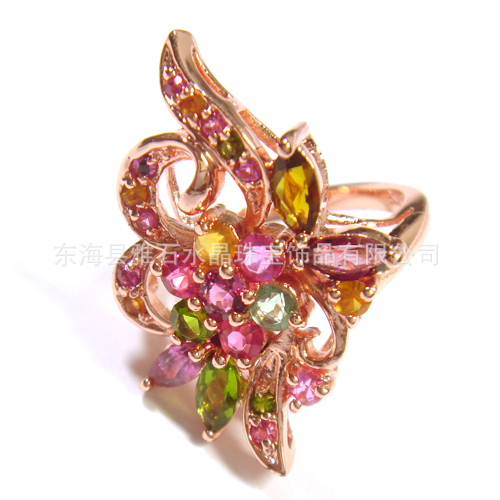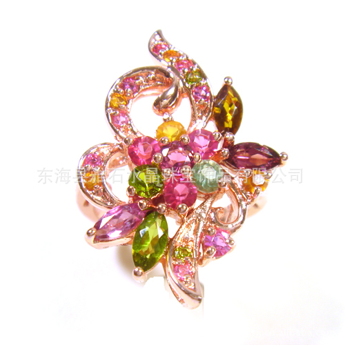 名称:925银玫瑰金天然碧玺‘花团锦簇’戒指