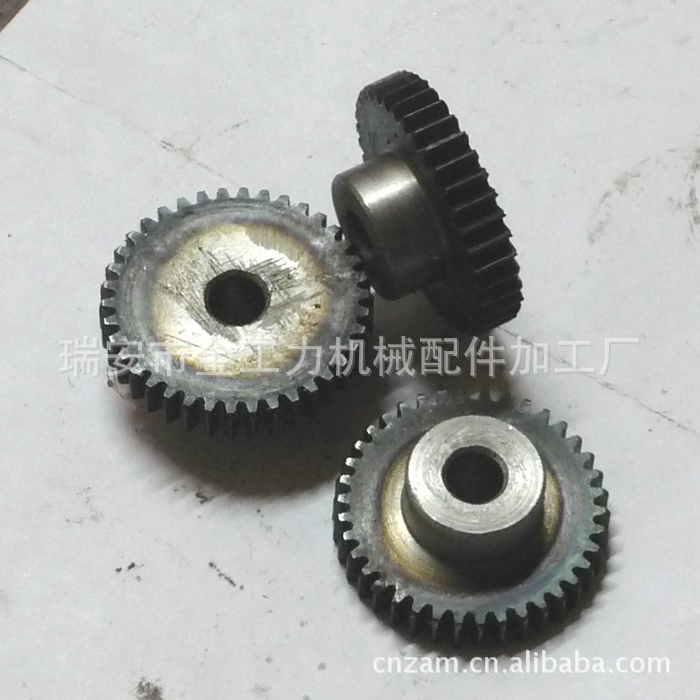 | 名 称:圆柱齿轮 型 号:1M-38齿 尺寸参数: 直径40mm,齿宽7,总厚15, 内孔8mm,台阶直径20 材质:碳钢45# 处理:齿面热处理 |