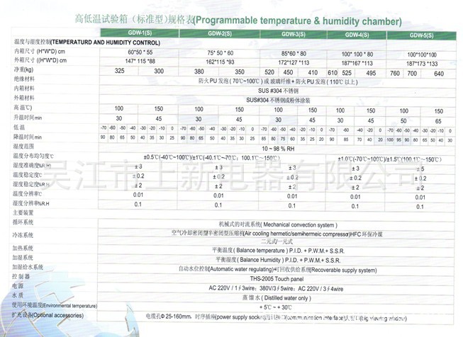高低温试验箱(标准型)规格表(Programmable temperature & humidity chamber)