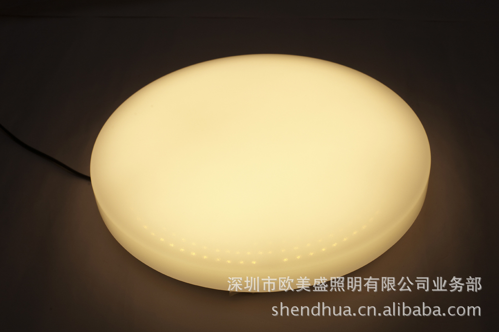 LED数量:300粒外形尺寸:外径350mm,厚度70mm灯 壳:阻燃塑料+亚克力灯 珠:SMD3528发光角度:180°功 耗:18W输入电压:AC220V/50HZ色 温:2800K/6500K光 通 量:1368lm效 率:大于90%PF(功率因数):大于0.65防护等级:IP60同比白炽灯:40W同比节能灯:13W连续工作:大于24小时衰 减 率:2%1000小时使用寿命:大于50000小时LED灯具优点:节 能 —— “耗电量低,节省能源” LED日光灯的耗电量是传统日光灯的十分之一,是节能灯的四分之一。环 保 —— “环保灯具,保护地球”传统的日光灯中含有大量的汞元素,如果破碎汞会挥发到大气中,严重污染空气和水资源。LED是一种绿色环保光源,不含汞元素。寿命长 —— “长期使用,无须更换”寿命是传统日光灯的10倍,可以长期使用而无需更换,减少人工费用。对普通家庭照明可谓“一劳永逸”,更适合难以更换的场合。发热少 —— “高效转换,减少发热”传统灯具会产生大量的热能,而LED灯具则是把电能全都转换为光能,不会造成能源的浪费。而且对文件,衣物也不会产生退色现象。安 全 —— “坚固牢靠,抗振性好” LED灯体本身使用的是环氧树脂而并非传统的玻璃,没有传统灯管碎裂的隐患。即使砸在地板上,也不会轻易损坏,可以放心使用。其抗震性能好,运输方便。无频闪 —— “光线柔和,保护眼睛” 传统的日光灯使用的是交流电,所以每秒钟会产生100-120次的频闪。LED灯具是把交流电直接转换为直流电,不会产生闪烁现象,保护眼睛。无噪音 —— “清静舒适,没有噪音” LED灯具不会产生噪音,对于使用精密电子仪器的场合为上佳之选。适合于图书馆,办公室之类的场合。无紫外线 ——“无紫外线,没有蚊虫” LED灯具不会产生紫外线,因此不会象传统的灯具那样,有很多蚊虫围绕在灯源旁。室内会变得更加干净、卫生、整洁。标准灯头 ——“通用灯头,直接替换”通用标准灯头(E27、MR16、GU10),可直接替换现有卤素灯、白炽灯、荧光灯。配光技术 ——“配光技术,升华效果”配光技术使LED点光源扩展为面光源,增大发光面,消除眩光,升华视觉效果,消除视觉疲劳。显色性好 ——“多种色温,显色性好”发光效率可高达80lm/w,多种色温可选,显色指数高,显色性好。时尚流行 ——“时尚流行,跟随潮流”产品设计充分体现潮流精神,外观时尚、优雅,款款有创意