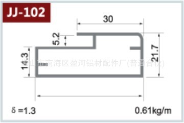 橱柜铝框JJ-102,可定做多种表面,产品厚度为1.3,适合用于各种中高档橱柜门板!