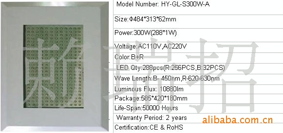 | 4.不同光之间的比例可由客户指定,我们建议的比例是(红:蓝)8:1, 7:2和 7:1:1 ,红.蓝.橙.白.黄混合光提供给植物. |