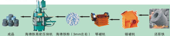 手动铁粉压块机压制后的铁粉直接装罐,烧制成的海绵铁,具有产量高,节能,密度大等优点。