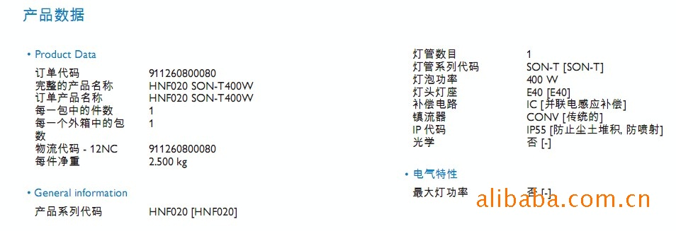 灯管系列代码 SON-T [SON-T]