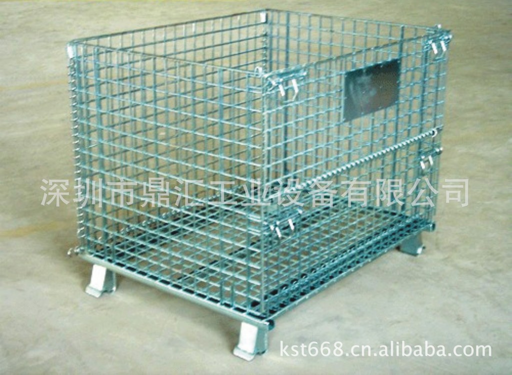 仓储笼(仓库笼)又称储物笼;采用强力钢丝焊接而成,底部以U形焊接补强,强度高、装载能力大、可叠四层、实现仓储的立体化,不同型号、不同规格的折叠式仓储笼(仓库笼)承重为0.8T~2.0T;折叠式结构,装载、周转、存放较为方便。存放规整,易于定置、单元化存储方便管理。仓库笼不使用时可折叠存放,节省空间;折叠式仓储笼(仓库笼)表面镀锌,美观抗氧化,可长期使用。卫生免疫、周转、存放和回收均不污染环境;折叠式仓储笼(仓库笼)适于用叉车、吊车、行车、升降机、台车、液压托盘车等装卸、搬运、堆高,省时省力。折叠式仓储笼(仓库笼)门可打开,不用翻仓即可取用所需之物料。