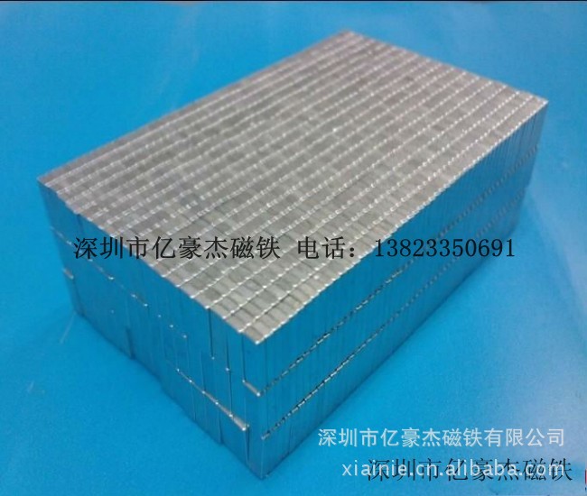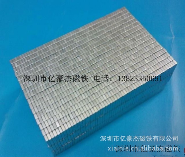 深圳市亿豪杰磁铁有限公司是专业供应钕铁硼的企业,主要产品有钕铁硼强磁、铁氧体磁铁、橡胶磁、保健磁铁、沉头孔磁铁,镀锌磁铁,镀镍磁铁。强力磁铁、手袋磁铁,包装盒磁铁、玩具磁铁、手机专用磁铁、家具磁铁,皮具磁铁,五金塑胶磁铁,工艺品磁铁,皮具手袋箱包用的隐形磁铁、磁扣磁钮等, 一、产品性能: N30-50 N30M-N50M N30H-N45H N30SH-N45SH N28UH-N45UH 二、产品形状: 各种圆形、方形、环形、条形、瓦形、梯形、各种畸形等磁铁 三、主要用途: 玩具、包装盒、手袋、皮具、电子产品、手机、电声产品、电机、马达、仪器、文具、标识牌、工艺品、礼品、服饰配件、隐形磁钮及隐形磁扣等各种用途的磁铁 四、表面处理: 镀白锌、兰白锌、五彩锌、镀镍、镍铜镍、纯银、纯金及环氧镀 五、优势特点: 交货快捷,准时,品质好,服务完善,珠三角地区可以4-5天交货 亿豪杰磁铁公司热忱欢迎广大海内外的客商来电来函洽谈业务,我们将本着互惠互利的原则,期盼与你携手合作、共创辉煌!