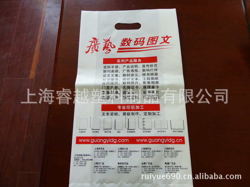 上海睿越包装制品有限公司是专业从事塑料制品、包装制品加工的生产企业。公司位于上海市嘉定区马陆镇周赵路588号。主要产品有:袋类产品有PE袋、彩印袋、吊卡袋、手提袋、服装袋、方底袋、圆底袋、网格导电袋、汽泡袋、PVC袋、POF袋、购物袋、垃圾袋、礼品袋、自封袋、复合袋、穿绳袋、纸袋、咖啡袋、冷冻袋、化妆品袋、环保袋、铝箔袋、真空袋、马夹袋、连卷袋、LDPE膜、HDPE膜、PE热收缩膜、PVC热收缩膜、POF热收缩膜、PP膜、防静电膜、防锈膜、PE缠绕膜、PE保护膜、可降解膜等。PE连体袋、食品袋、、塑料袋等。同时公司还成立分公司主要生产:珍珠棉的型材加工、进口珍珠棉、珍珠棉切片、气泡膜、气泡袋系列。我公司生产的产品都可根据客户要求制作成各种款式的包装产品和塑料印刷品。同时我公司已通过ISO9001、商检认证等都具备生产食品级塑料袋资质。