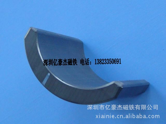 永磁铁氧体是以SrO或BaO及三氧化二铁为原料,通过烧结工艺方法制造而成,质地也比较坚硬,属脆性材料,性能主要有Y10T、Y25、Y30、Y30BH、Y35等牌号,产品规格有圆形、圆柱形、方形、瓦形等。广泛应用于电声喇叭、电子产品、玩具、工艺礼品、包装等。由于铁氧体磁铁有很好的耐温性及价格低廉,已成为应用最为广泛的永磁体。