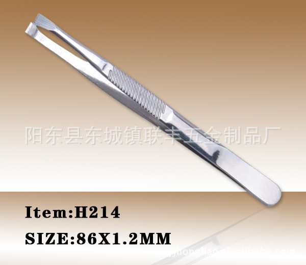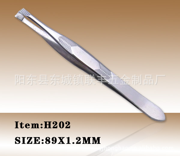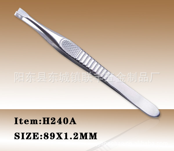 本厂专业生产的不锈钢眉夹,采用高品质进口430不锈钢材料,由冲压、成型、碰焊、研磨、抛光等生产工艺精造而成。一流的生产工艺和严格的质量管理为品质保证,实用性强,款式新颖,外观精美,具有不生锈,夹口平整紧密无裂缝,弹性柔软,紧密的夹口可以帮你修出迷人的眉形。产品表面处理效果为砂光、镜光,表面处理效果可以根据不同客户需要,高档实用。凭着广泛的修眉用途,强劲的功能效力,经济实惠的价格,全面满足修眉护理的需要,使用得简单轻松,让人们愉快享受生活的美好惬意。