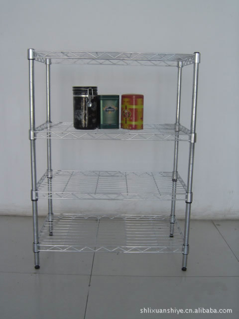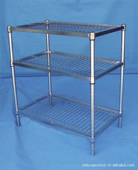 二 置物架特点 (1)结构独特:采用碳钢镀铬网片及支柱组合而成,其独特的造型结构,设计灵巧,装卸简便,洁净亮丽,坚固的碳钢镀铬网片能促进空气流通,减少尘埃积聚,开放式的设计,令储物一眼可见。