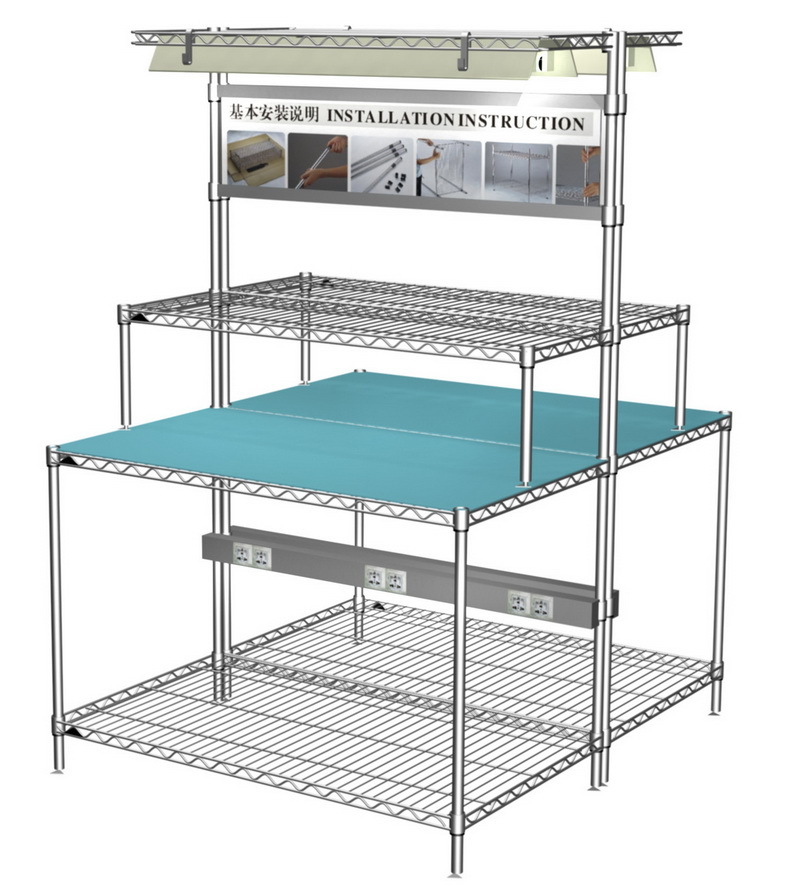 (2)灵活多变:支柱每一英寸有一沟圈,可随意调节网片高度(每英寸递增减)。可根据实际需要随意组合,可向左右随意延伸(同一宽度)或向前向后随意连接(同一长度)。加上各种配件,可组合成各种功能的产品,如加上V型钩、光身管,可组合成衣架;加上方向把手、轮子,可组合成餐车或推车;加上分隔片、侧片,可组合成书架等等。