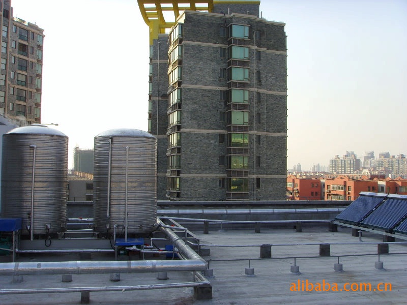 温差强制循环系统(两个水箱):温差循环,定量用水,防冻循环,恒温加热,回路循环.适用宾馆,酒店,住宅小区,高档洗浴中心.此系统24小时提供热水.