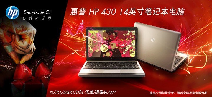 惠普(hp)HP 430(LW987PA) 14英寸笔记本电脑 (i3-2310 2G 500G D刻 无线 摄像头 W7)主体 |