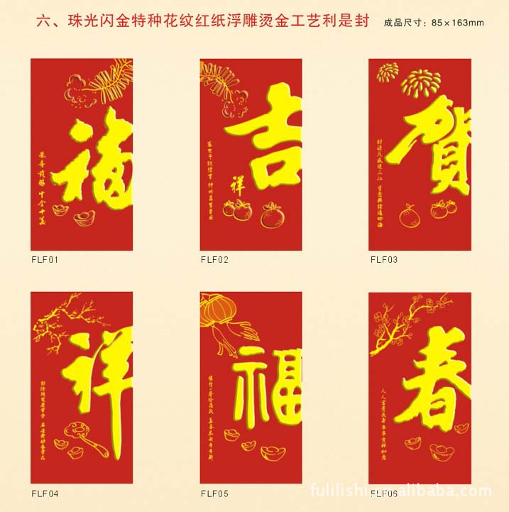 珠光闪金特种花纹红纸浮雕烫金工艺利是封
