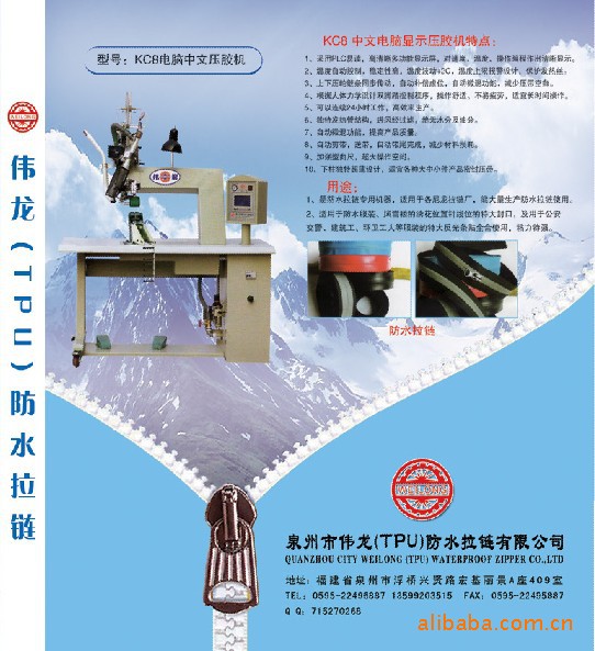 泉州市伟龙机械制造有限公司是一家经国家相关部门批准注册的企业。泉州市伟龙机械制造有限公司凭着良好的信用、优良的服务与多家企业建立了长期的合作关系。本公司严格按照IS9001质量体系管理和生产,主要生产应用于生产防系列产品的热风机:热风缝口密封机、防水拉链机、防水鞋机、水压机、无缝热压机、激光机等产品。 为满足各大生产厂家的需要,本公司还大量供应各种粘力特强、各种防水材料、PU胶条件、PVC胶条、橡胶带、纯PU胶条、三层带等。 泉州市伟龙机械制造有限公司热诚欢迎各界朋友前来参观、考察、洽谈业务。 泉州市伟龙机械制造有限公司是一家经国家相关部门批准注册的企业。泉州市伟龙机械制造有限公司凭着良好的信用、优良的服务与多家企业建立了长期的合作关系。本公司严格按照IS9001质量体系管理和生产,主要生产应用于生产防系列产品的热风机:热风缝口密封机、防水拉链机、防水鞋机、水压机、无缝热压机、激光机等产品。 为满足各大生产厂家的需要,本公司还大量供应各种粘力特强、各种防水材料、PU胶条件、PVC胶条、橡胶带、纯PU胶条、三层带等。 泉州市伟龙机械制造有限公司热诚欢迎各界朋友前来参观、考察、洽谈业务。 泉州市伟龙机械制造有限公司是一家经国家相关部门批准注册的企业。泉州市伟龙机械制造有限公司凭着良好的信用、优良的服务与多家企业建立了长期的合作关系。本公司严格按照IS9001质量体系管理和生产,主要生产应用于生产防系列产品的热风机:热风缝口密封机、防水拉链机、防水鞋机、水压机、无缝热压机、激光机等产品。 为满足各大生产厂家的需要,本公司还大量供应各种粘力特强、各种防水材料、PU胶条件、PVC胶条、橡胶带、纯PU胶条、三层带等。 泉州市伟龙机械制造有限公司热诚欢迎各界朋友前来参观、考察、洽谈业务。 泉州市伟龙机械制造有限公司是一家经国家相关部门批准注册的企业。泉州市伟龙机械制造有限公司凭着良好的信用、优良的服务与多家企业建立了长期的合作关系。本公司严格按照IS9001质量体系管理和生产,主要生产应用于生产防系列产品的热风机:热风缝口密封机、防水拉链机、防水鞋机、水压机、无缝热压机、激光机等产品。 为满足各大生产厂家的需要,本公司还大量供应各种粘力特强、各种防水材料、PU胶条件、PVC胶条、橡胶带、纯PU胶条、三层带等。 泉州市伟龙机械制造有限公司热诚欢迎各界朋友前来参观、考察、洽谈业务。 泉州市伟龙机械制造有限公司是一家经国家相关部门批准注册的企业。泉州市伟龙机械制造有限公司凭着良好的信用、优良的服务与多家企业建立了长期的合作关系。本公司严格按照IS9001质量体系管理和生产,主要生产应用于生产防系列产品的热风机:热风缝口密封机、防水拉链机、防水鞋机、水压机、无缝热压机、激光机等产品。 为满足各大生产厂家的需要,本公司还大量供应各种粘力特强、各种防水材料、PU胶条件、PVC胶条、橡胶带、纯PU胶条、三层带等。 泉州市伟龙机械制造有限公司热诚欢迎各界朋友前来参观、考察、洽谈业务。 泉州市伟龙机械制造有限公司是一家经国家相关部门批准注册的企业。泉州市伟龙机械制造有限公司凭着良好的信用、优良的服务与多家企业建立了长期的合作关系。本公司严格按照IS9001质量体系管理和生产,主要生产应用于生产防系列产品的热风机:热风缝口密封机、防水拉链机、防水鞋机、水压机、无缝热压机、激光机等产品。 为满足各大生产厂家的需要,本公司还大量供应各种粘力特强、各种防水材料、PU胶条件、PVC胶条、橡胶带、纯PU胶条、三层带等。 泉州市伟龙机械制造有限公司热诚欢迎各界朋友前来参观、考察、洽谈业务。 泉州市伟龙机械制造有限公司是一家经国家相关部门批准注册的企业。泉州市伟龙机械制造有限公司凭着良好的信用、优良的服务与多家企业建立了长期的合作关系。本公司严格按照IS9001质量体系管理和生产,主要生产应用于生产防系列产品的热风机:热风缝口密封机、防水拉链机、防水鞋机、水压机、无缝热压机、激光机等产品。 为满足各大生产厂家的需要,本公司还大量供应各种粘力特强、各种防水材料、PU胶条件、PVC胶条、橡胶带、纯PU胶条、三层带等。 泉州市伟龙机械制造有限公司热诚欢迎各界朋友前来参观、考察、洽谈业务。