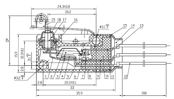 驱动形式:按钮,直动臂,滚轮动臂
