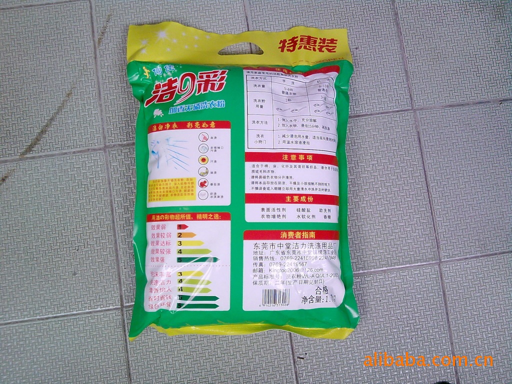 洁の彩洗衣粉主要成份:表面活性剂、硅酸盐、助洗剂、衣物增艳剂、水软化剂、香精洁の彩加香无磷洗衣粉,添加更多去污力因子,深入织物内物,充分瓦解各类顽固污渍,有效洁净各类污渍不留痕迹,衣物洗后焕发洁净光彩!手洗,机洗都适合。