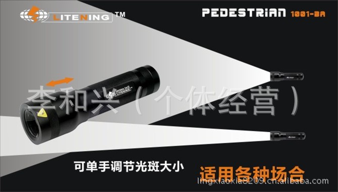 本产品外观简洁精致,配有皮套方便随身携带,采用美国CREE Q3 超亮LED原装进口灯泡,灯泡使用寿命可达100,000个小时,产品使用3节七号电池,近14小时持续点亮时间,最大射程能达224以上,可手动任意调节远近不同的光线,拥有军警手电才有的战术闪动功能,极佳的散热性能,可长时间稳定工作,外壳使用6061-T6航空铝材,轻巧且坚固耐用,表面采用黑色阳极氧化工艺,不易刮花掉色,使用三合一体电池盒,镀金的触钉与连接片保证良好的导电性能,全天候IP64防护等级,适用于大多数工作环境。主要适用于现场勘察、海岸巡逻、交通照明、野外作业、刑侦追捕、治安保安、救灾抢险、工程维修、露营钓鱼、家居旅行、礼品赠送。