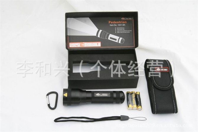附件:配套礼盒/七号电池3颗/手电皮套一个/手绳1根/登山扣1个/保修卡1张/说明书1份