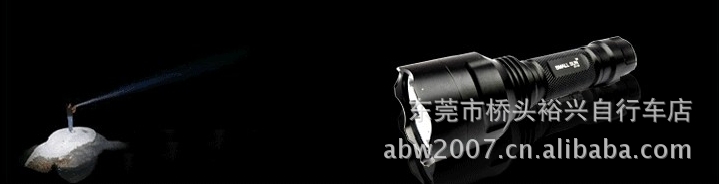 灯头:Q5灯头,光色正白,量度高达380流明。射程100-200米,灯泡灯杯大,聚光效果好!灯泡寿命高达10万小时。(灯泡属易损品,请勿随意拧下灯头取出光杯以免损坏灯泡,人为原因造成灯泡损坏本店概不负责!)
