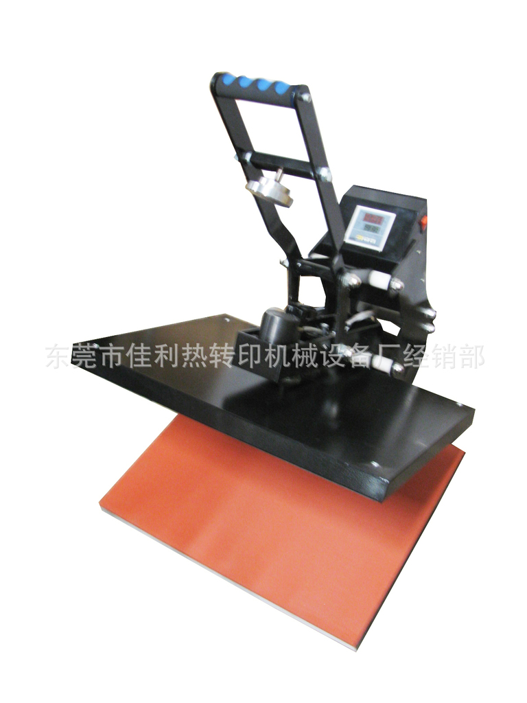 本机采用磁性助力自动吸合,利用这一特点,允许你离开做其它事情,例如准备印第二件东西,不需空气压缩机;利用时间和温度数字控制器设置你所需的确切温度、时间;可将升华类,溶剂类墨的彩色图案、文字经热转印烫印在棉,麻,化纤等织物上,还可以进行植毛烫画和发泡印花工艺等热处理,方便又易用。