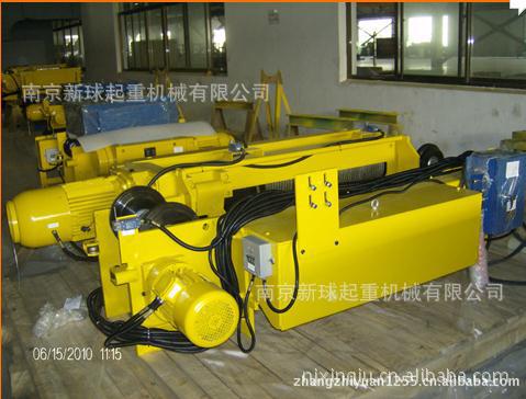 钢丝绳电动葫芦 产品特点:重量轻、体积小、结构紧凑、品种规格多、运行平稳,操作简单,使用方便。它们可以在同一平面上做直的、弯曲的、循环的架空轨道上使用,可以安装在葫芦单梁、桥式起重机,门式起重机、悬臂起重机等多种起重机上。稍加改动,还可作卷扬用。因此,它是工厂、矿山、港口、仓库、商店等常用的起重机设备之一,是提高劳动效率,改善劳动条件的必备机械。为满足用户各种工况特殊需要,在钢丝绳电动葫芦的基础上为用户设计生产特殊用途的各种规格产品多达一百余种,电动葫芦使用在特别重要场所时,应装设第二制动器,根据用户的使用要求,我厂还生产除有锥形转子制动电动机正常制外,还可以在减速器的高速轴上增加一套弹簧电磁失电制动器,增加制动安全性。