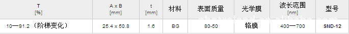 - 此滤光片的相邻区域的光学密度相差0.1,共有11级。