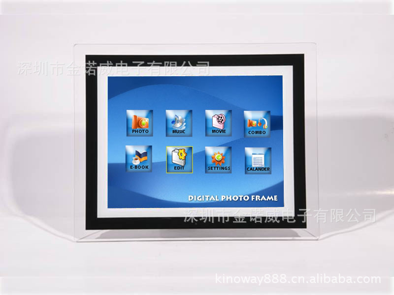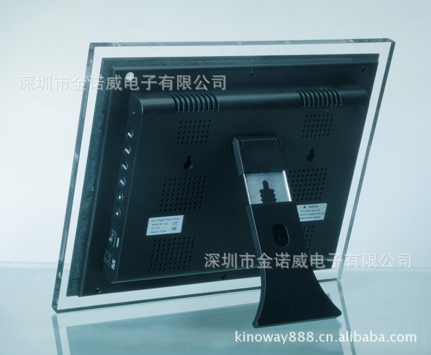| 产品规格 | | 透明亚克力 | 正面为塑胶面板,中间为透明亚克力,背面及支架为工程塑料。 | | 电源 | 直流电压12V | | 功耗 | ≤1A | | 重量 | 约2公斤 | | 整个相框尺寸 | |