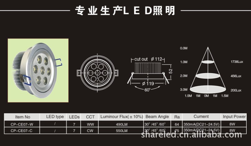 广州享亮光电科技有限公司(www.shareled.com) LED天花射灯7*1W 广州享亮光电