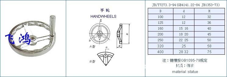 深州市南护飞鸿机械操作件厂生产铸铁镀铬手轮、、铝合金双辐条手轮胶木手轮、波纹手轮、内波纹手轮、椭圆拉手、星形把手、手柄、小转动手柄、手柄杆、手柄座、球头手柄、工程塑料拖链、铰链、合页、位置显示器、冷却管、防护罩等机械操作件,厂家供应价格实惠、外观精美工艺细致,如果您需要进一步了解铸铁手轮价格、铸铁手轮规格型号、铸铁手轮质量、铸铁手轮键槽尺寸、铸铁手轮厂家等信息请联系我们,网址:www.nhfeihong.com邮箱:nhfeihong@163.com联系人:张文清 手机:13785882730 地址:河北省深州市南护070号