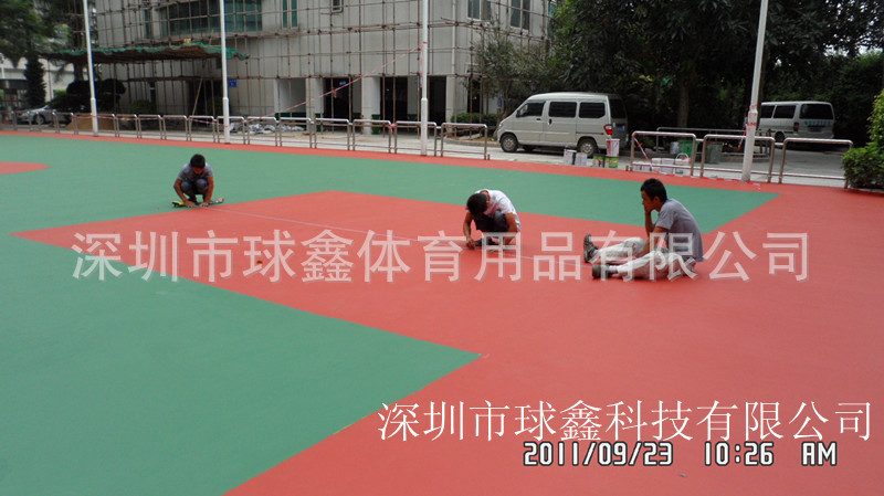 1:塑胶球场美观.厚薄均匀.色彩鲜艳.