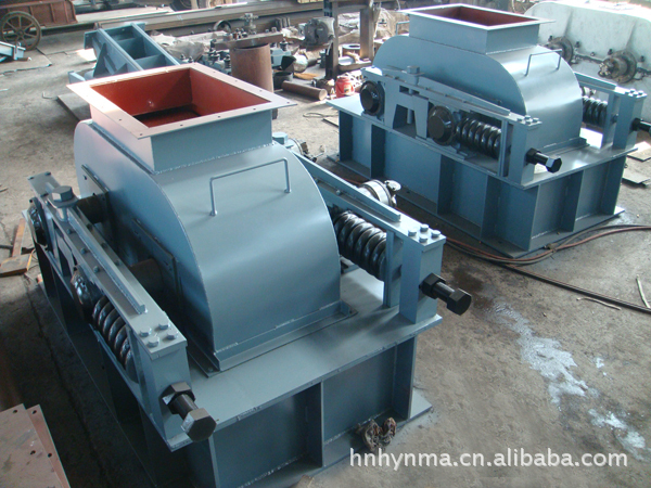 被破碎物料经给料口落入两辊子之间,进行挤压破碎,成品物料自然落下.遇有过硬或不可破碎物时,辊子可凭液压缸或弹簧的作用自动退让,使辊子间隙增大,过硬或不可破碎物落下,从而保护机器不受损坏.相向转动的两辊子有一定的间隙,改变间隙,即可控制产品最大排料粒度.双辊破碎机是利用一对相向转动的圆辊,四辊破碎机则是利用两对相向转动的圆辊进行破碎作业. 特点:双辊破碎机采用三角带或万向节联轴器进行传动和调节两辊之间的间隙.