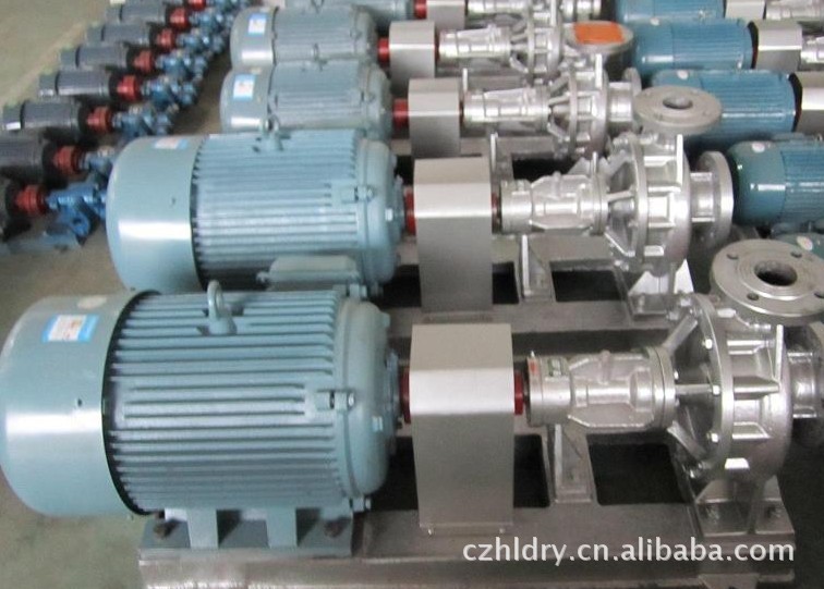 WRY系列风冷热油泵技术先进、效率高,在热态下能长期稳定运转无泄漏,无附加冷却系统,使用安全可靠等特点,在我国载热体加热系统中得到了广泛的使用,已经进入石油、化工、橡胶、塑料、制药、纺织、印染、筑路、食品等各个工业领域,WRY系列风冷热油泵主要用于输送不含固体颗粒的弱腐性高温液体,使用温度≤350℃,是一种理想的循环泵。该泵广泛应用纸餐盒高温定型、动态硫化轮胎及再生胶机械、平板硫化、橡胶、烘干、饲料烘干、印染、化工、胶合板生产、防水卷材生产、沥青加热、挂面烘干等行业。二、结构特点: WRY系列风冷热油泵是消化吸收国外油泵的基础上研制的第二代产品,基本结构形式为单级单吸悬臂式脚支撑结构,泵的进口为轴向吸入,出口为中心垂直向上,和电机同装于底座上。 WRY型导热油泵的支撑采用了双端球轴承支撑的结构形式,前端采用润滑油润滑,后端采用润滑脂润滑,中间有一导油管,用以随时观察密封情况和回收导热油。 采用自热散热结构,改变了传统的水冷却结构,使结构简单,体积小,节约运行费用,性能好,使用可靠。(1)采用填料密封和机械密封相结合的形式,填料密封用耐高温的填料,具有良好的热态适应性,而机械密封则采用机械强度高,耐磨性好的硬质合金材料,保证了高温情况下的密封性能。(2)采用第三代聚四氟乙烯(简称PTFE)做唇形密封,使密封性能产生了飞跃,比橡胶类密封可靠性提高25倍,耐腐蚀性能极强。
