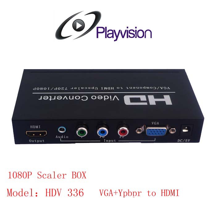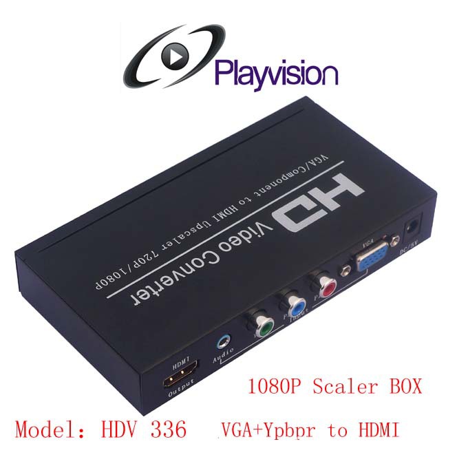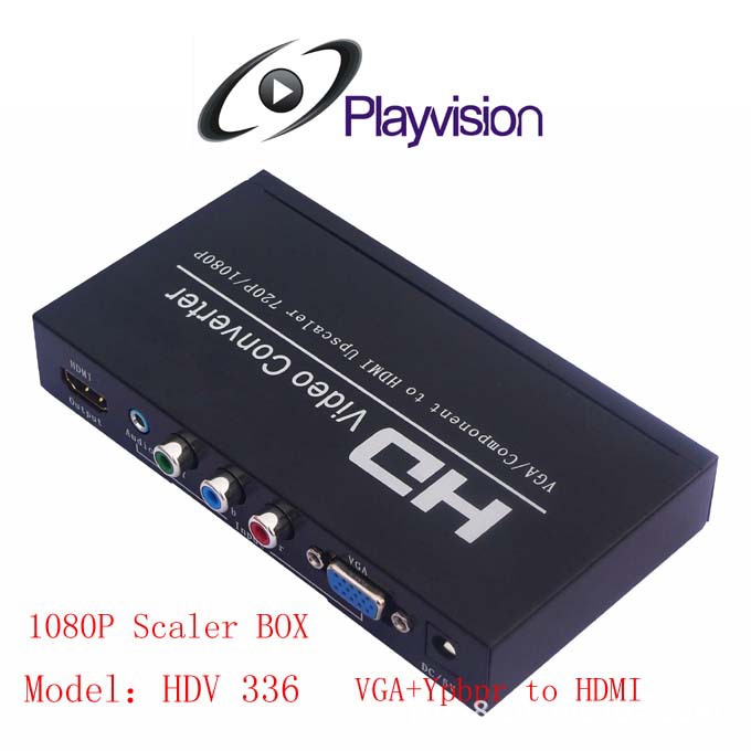玩视科技公司生产的HDV336,VGA/YPbPr转HDMI转换器,可以将电脑PC信号以及SD/HD的YPbPr模拟色差信号与AUDIO音频一起转换成高清的HDMI数字信号,经过高速ADC模数转换,3D Deterinterlace(隔行转逐行),Scaler(缩放)等视频处理技术,让输出的HDMI可以达到高清1080P效果;为更多的机顶盒、播放器直接增加HDMI输出端口!节省大量的开发时间,使产品更快升级。