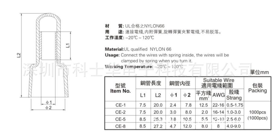用法:使用时先将电线尾部外皮剥去,然后再插入端子中,以夹线工具夺压着即可