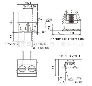 间距:3.50/3.96mm;额定线径:24-18AWG;力矩:1.5kgf.cm;额定负载:300V/10A;耐电压:2KV;剥线长度:6.00-7.0mm;绝缘外壳:PA66 V-0;端子:黄铜 镀锡;使用温度:-40℃~105℃;PCB孔尺寸:φ1.4;位数:2-24P;