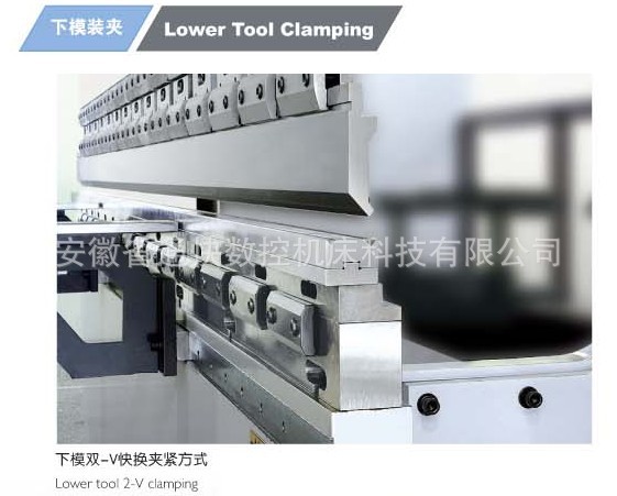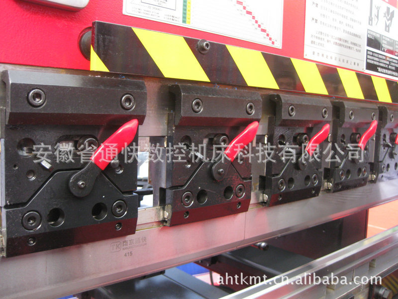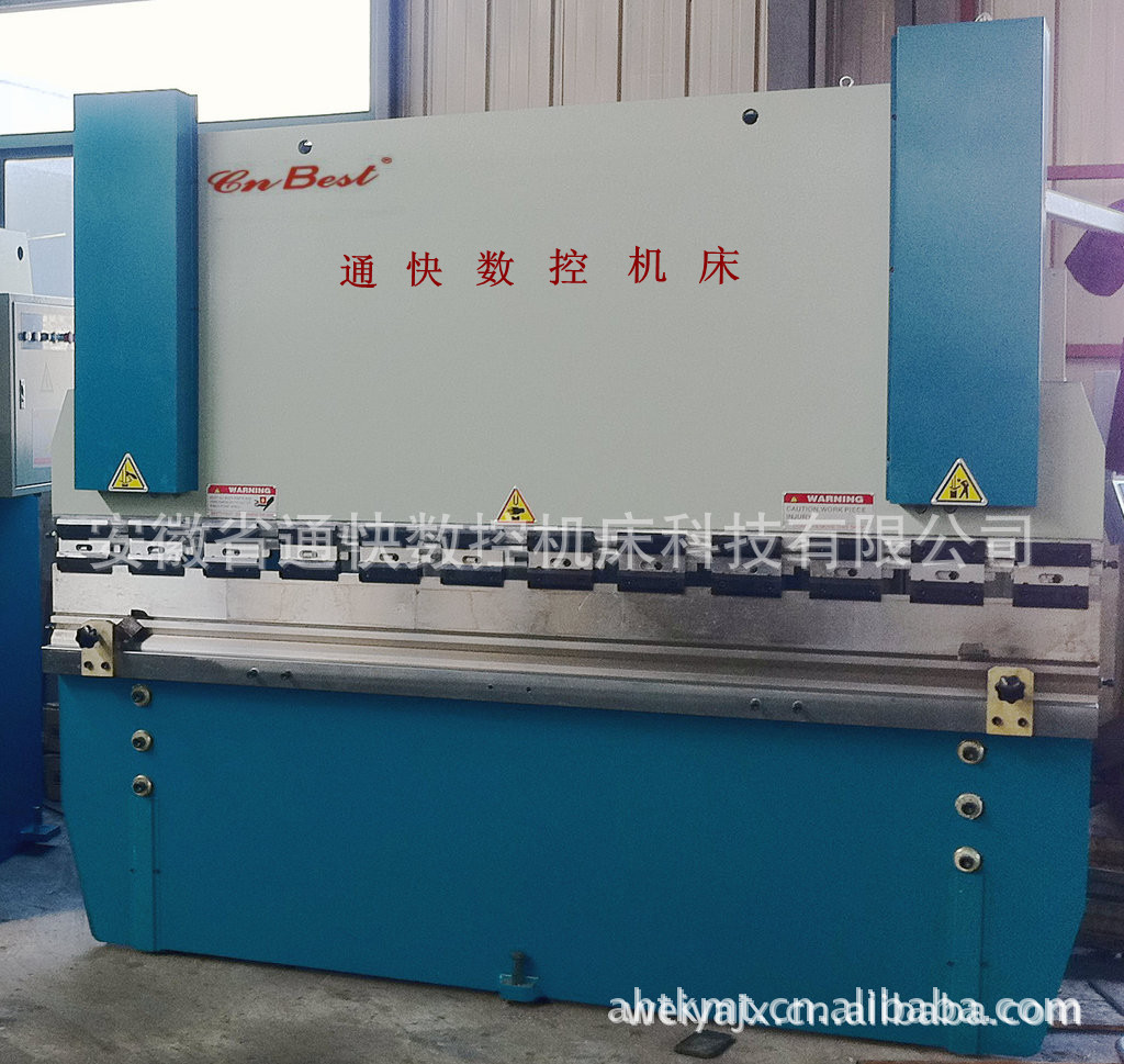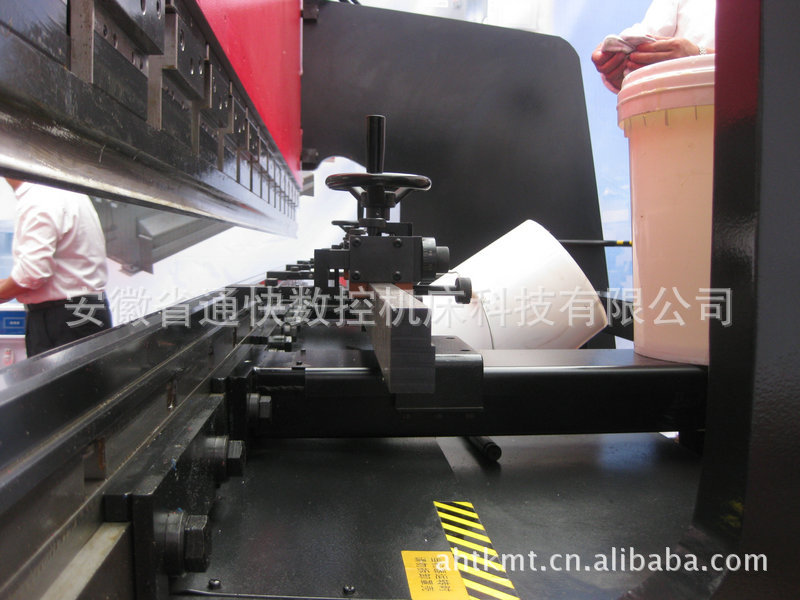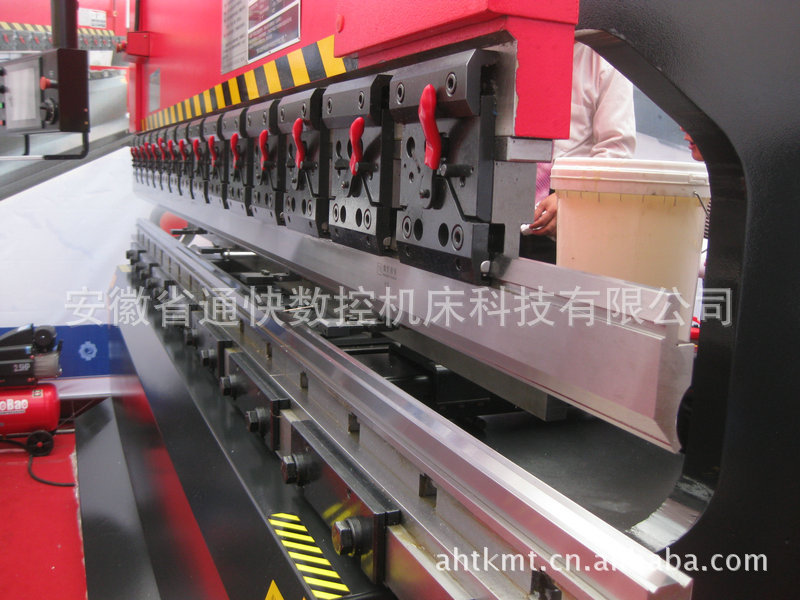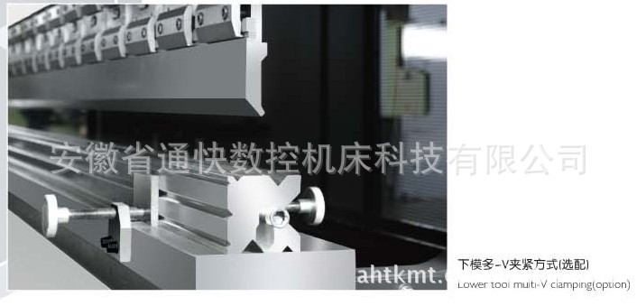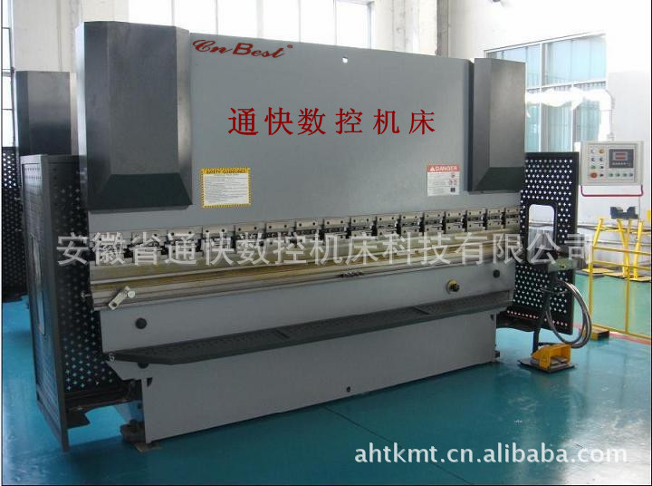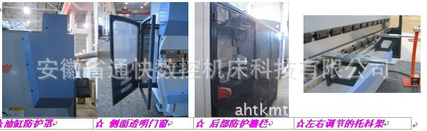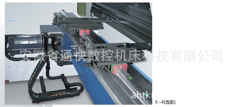 测量系统和液压均衡功能,能满足全长或偏心加工的需要,可靠保 证产品质量要求 ◆机架喉口设有两块“C”形板机构,直接检测上、下模之间的距离,确保制件精度 ◆油缸加工采用整体锻造---粗加工---调质---精加工---内壁磨削---内壁浮镗滚压工艺,使油缸内壁既有硬度耐磨,又有高的圆柱度精度。活塞杆镀尺寸铬处理 ◆油缸内密封件均为进口件,密封性强,寿命长 ◆液压系统管接头采用国外进口,质量佳,性能强 ◆液压系统有超负荷溢流安全保护 ◆油位高度有清晰直观的显示 ◆机床可在额定负荷下连续工作,液压系统保证无泄漏、持续稳定,精度高 5、后定位系统 ◆设备适用于生产多道折弯、高精度工件 ◆后挡料速度为目前国内最快,定位精度国内最高 ◆后挡料X轴采用滚珠丝杠传动,直线导轨导向,数字式交流伺服电机驱动,通过控制后挡料的前后移动,可实现后挡料块行程自动调节,有退让控制功能 ◆后挡料Z1、Z2两个挡指可人工沿直线导轨左右移动 ◆采用箱式挡料梁挡块结构,具有足够的机械强度和刚度 ◆独特的挡子结构,扩大了挡料范围 6、电气控制系统 ◆电气元件采用国外进口或合资,符合国 际标准,安全可靠,抗干扰能力强,电 控柜有散热装置 ◆带有可移动的脚踏开关,方便操作,有急停功能 7、挠度补偿 ☆紧凑的电控柜  8、数控系统