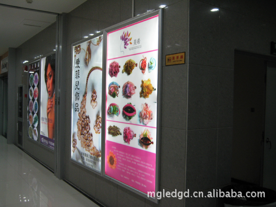 上海明贵光电科技厂家订做中高档铝型材四边开启式超薄灯箱,外观精美,节能耐用,优质低价,光源:LED灯条、T4灯管,导光板:纳米导光板、激光导光板,可做出口,成功案例:菲利普照明、美国尚德等。