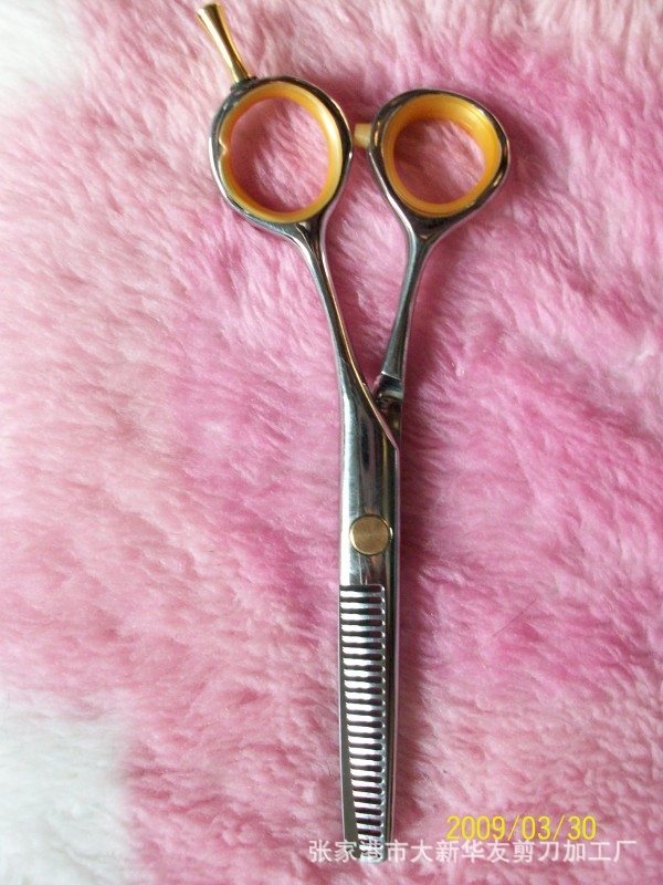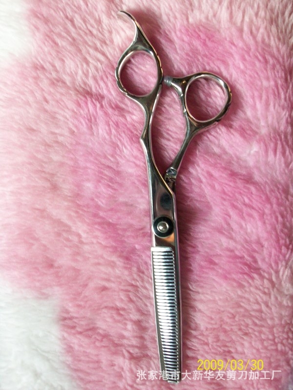 公司产品由我厂先进设备及专业人员精心制作。具有锋利,耐用,手感畅滑。专业设计师根据人体手形精心设计,最新的流线型设计刀身。长时间工作时,可减轻手肘及肩膀疲劳。可用于滑剪,飞剪。湿发不打滑,打薄剪修剪轻松。多种齿形,适合于任何发型。实用,美观是高级专业发型师之首选。