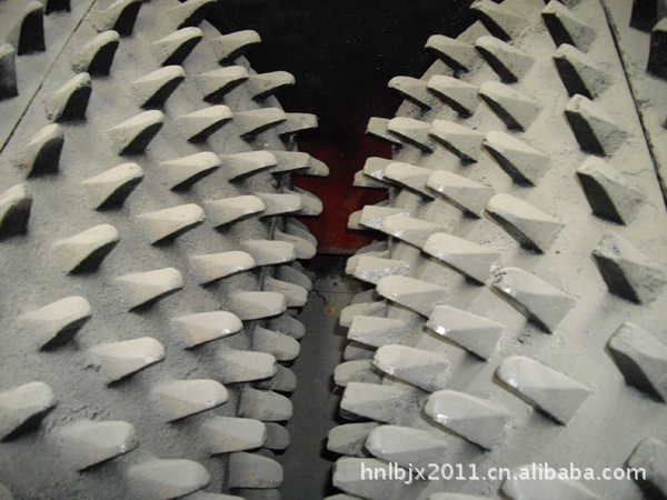 2.出料粒度的调节:两辊轮之间装有楔形或垫片调节装置,楔形装置的顶端装有调整螺栓,当调整螺栓将楔块向上拉起时,楔块将活动辊轮顶离固定轮,即两辊轮间隙变大,出料粒度变大,当楔块向下时,活动辊轮在压紧弹簧的作用下两轮间隙变小,出料粒度变小。垫片装置是通过增减垫片的数量或厚薄来调节出料粒度大小的,当增加垫片时两辊轮间隙变大,当减少垫片时两辊轮间隙变小,出料粒度变小。