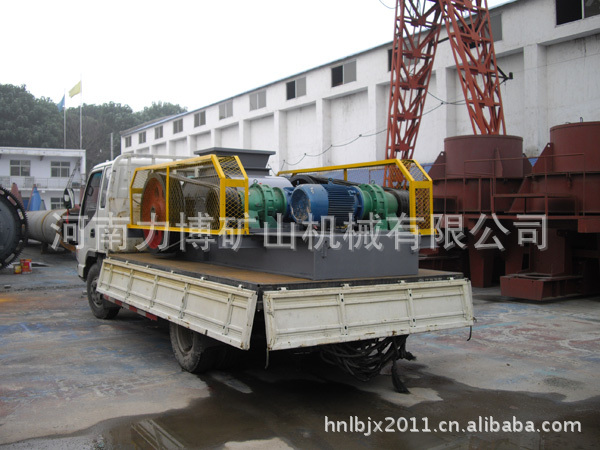 出料粒度的调节:两辊轮之间装有楔形或垫片调节装置,楔形装置的顶端装有调整螺栓,当调整螺栓将楔块向上拉起时,楔块将活动辊轮顶离固定轮,即两辊轮间隙变大,出料粒度变大,当楔块向下时,活动辊轮在压紧弹簧的作用下两轮间隙变小,出料粒度变小。垫片装置是通过增减垫片的数量或厚薄来调节出料粒度大小的,当增加垫片时两辊轮间隙变大,当减少垫片时两辊轮间隙变小,出料粒度变小。