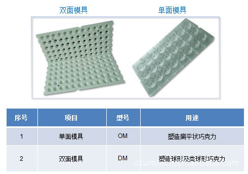 精确的三维立体形、巧克力粒状、上下双色产品浇注,以及类球形夹心。