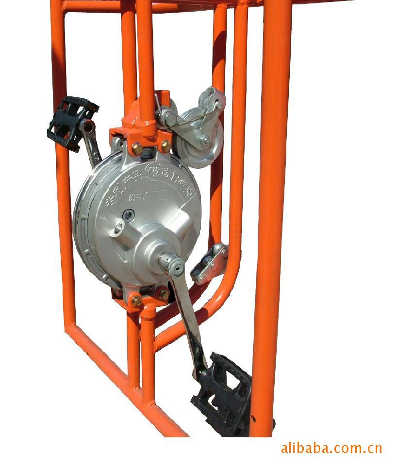脚蹬式升降吊篮是由沈阳华彩涂装有限公司独家研制、生产的高处作业升降设备,获得了三项国家专利。该产品设计独特、造型新颖,操作者凭借腿部力量,像骑人力车一样蹬踏,操作篮体升降,不蹬则自动锁定,速度可随意控制。钢丝绳设置多长,吊篮就能攀升多高。吊篮的机体结构简约、合理,减速机设计采用了曳引式传动和负力控制技术。吊篮的两端各设有两根钢丝绳,分别起承重和安全保护作用。吊篮上设置了三种不同形式的安全制动机构,其性能安全可靠。悬挂机构为组合吊臂、支架吊臂和女儿墙夹式吊臂三个类型供用户选用。该吊篮轻便灵活,操作简单省力,施工中移挪方便,能很快地进入工作状态,可根据需要组合成2、4、6米的篮体,且拆装容易,便于存放与运输。本产品非常适合高层建筑上的涂装、保温施工、贴面砖和楼厦的保养维护、清洗、安装等高处作业及相关行业,是高处作业领域的新型机械装备。目前产品在市面上分为B型和C型两个品种,均有二人操作型和单人操作型。