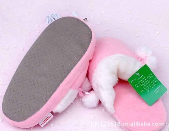 USB接口5v电压安全可靠,发热片采用进口东邦碳纤维长丝发热,发热稳定温效好60mm*100mm超大发热面积,发热片外层采用透明膜保护,防尘.防水(轻度)。鞋面采用高档超柔面料,鞋面有各款卡通图案可选,卡通图案采用进口电脑绣花机绣花,高档丝线,颜色鲜艳有立体感。底部采用防滑滴塑布,颗粒防滑。鞋子侧面采用拉链设计,方便发热片拆卸,便于清洗鞋子。