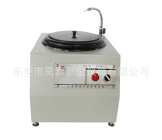 抛光机有焊接工作台、工作台面、抛光盘、抛光织物、抛光罩及开关等基本部件组成。工作台面上安装有2个抛光盘,可供两人同时操作,使用方便。两台的电动机多置于工作台面下部,通过固定片与台面连接。固定抛光盘用的锥套通过螺钉与电动机轴相连。抛光织物通过套圈紧固在抛光盘上。电动机的起停可分别由安装在面板上的开关控制,电动机启动后,便可用手对试样施加压力在转动的抛光盘上进行抛光。