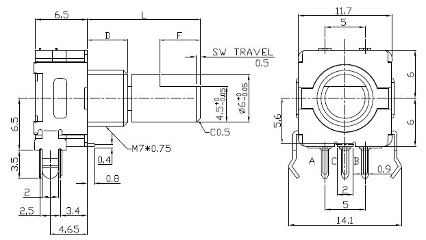 8mm带开关档位编码器 对讲机编码开关