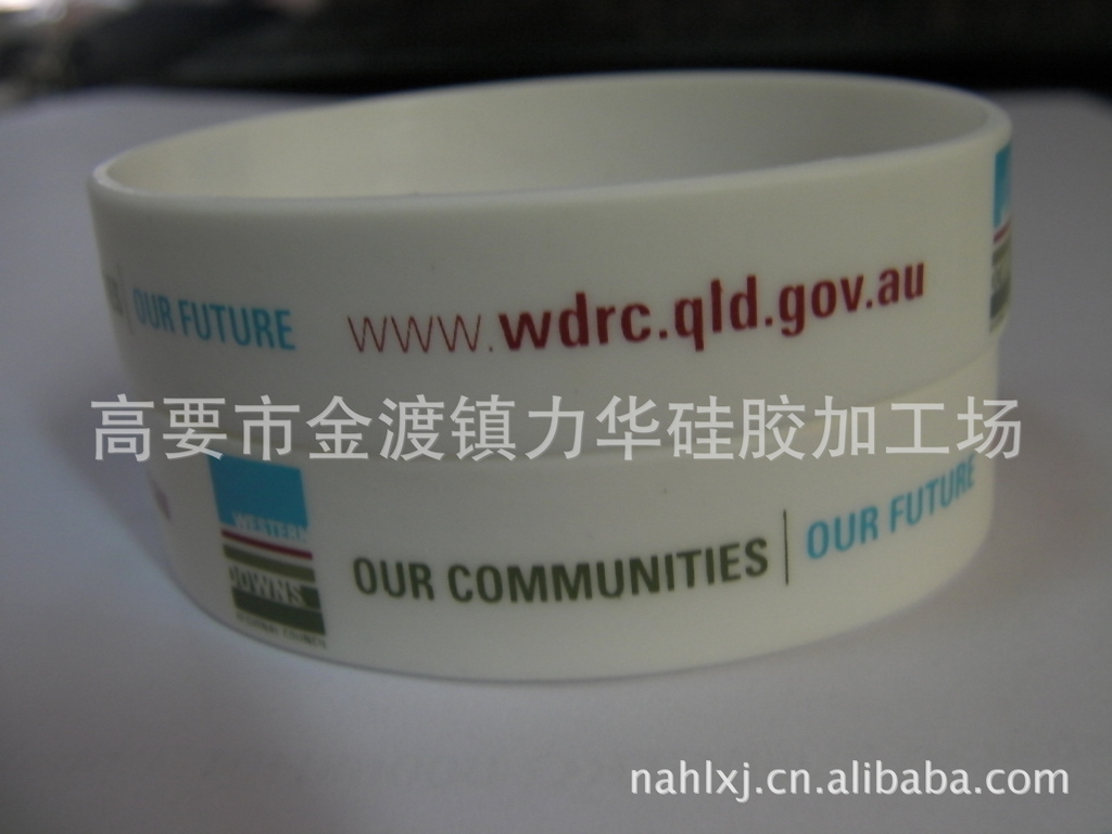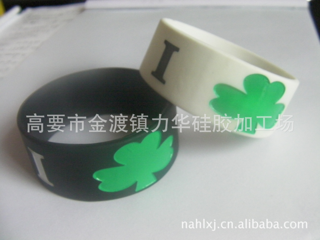 硅胶产品特点:由100%硅胶材质制成的手环有柔软、不开裂、使用寿命长、不刺激皮肤等优点。流行、前卫的环保硅胶手环,雕刻、印刷工艺,万种图案、千种色彩、潮流时尚。因材料质地柔软加上外观设计大方、简洁、颜色亮丽、深受国内外客户喜爱。此乃时下正流行的一种彩色硅胶饰品,戴于手上,是追星族和促销的时尚用品。生产工艺有:凹刻,凸字,添色,夜光,感温,感光,混色,分段,印刷等为目前流行款式,长期出口欧美,有公司多种款式可供选择,也可根据客户要求定做款式!!
