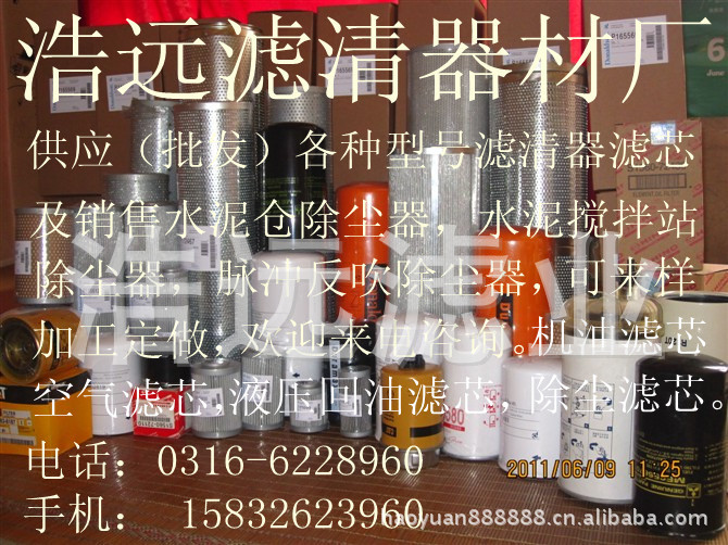 廊坊浩远过滤器材有限公司是一家专业生产柴油滤清器[滤芯].机油滤清器[滤芯].液压油滤清器[滤芯].油水分离器[滤芯].空气滤清器[滤芯].除尘滤清器[滤芯].的厂家,公司拥有机床.冲压.拉伸.表面处理.喷涂.印刷.质量检测等设备,是集设计.开发.制造.销售为一体的综合性企业,产品主要适用于;石油.矿山.冶金.化工.运输.建材.环保.净化.食品.医药.电力.纺织.机械设备等行业,我公司本着‘质量第一’,‘信誉至上’的原则竭诚为新老顾客服务.欢迎各界朋友与我公司联系洽谈。