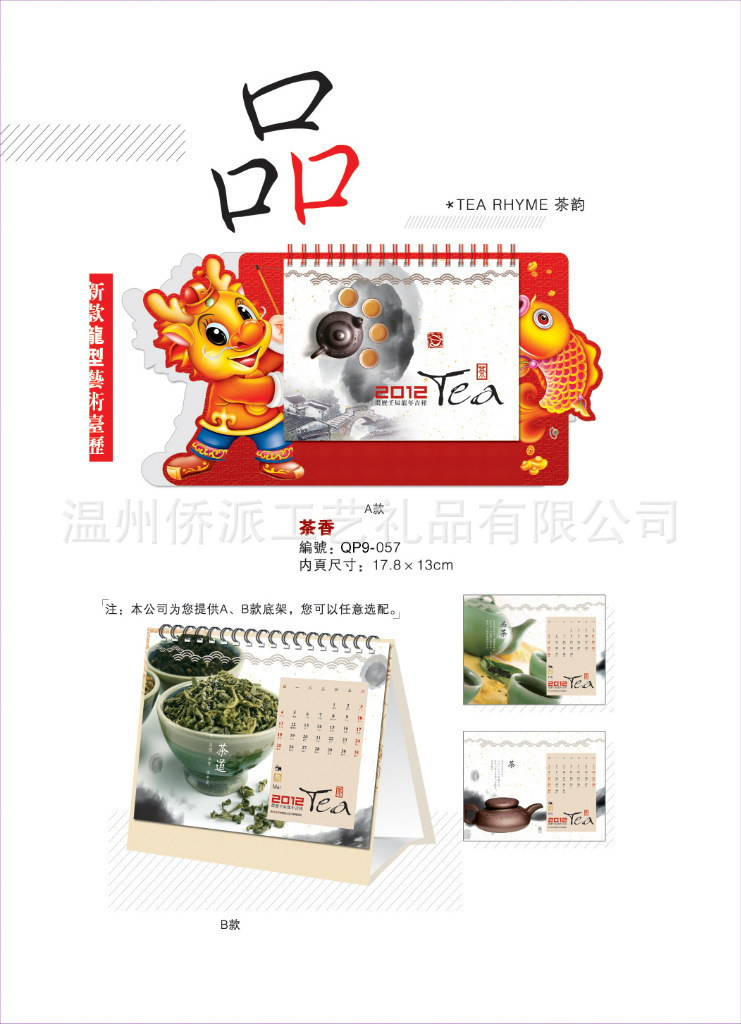 温州侨派工艺礼品有限公司是一家集生产加工台历、挂历、礼品包装盒、吊牌、中国结、大班台垫专版台挂历制作企业。本厂有全自动糊架机对外加工台历架,笔记本册,书壳等。温州侨派工艺礼品有限公司是一家经国家相关部门批准注册的企业。本厂以雄厚的实力、合理的价格、优良的服务与多家企业建立了长期的合作关系。温州侨派工艺礼品有限公司——热诚欢迎各界前来参观、考察、洽谈业务。