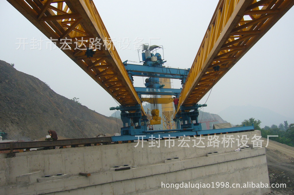 架桥机步履式行走,纵向行走不需辅轨;加边梁可以一步到位完成;斜、弯、坡桥均可架设,可架任意梁宽;过孔无需配重;用待架梁做配重。